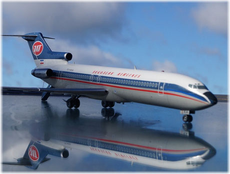 Die B 727 der JAT ist das erste Modell vom Peter aus einer Reihe von Verkehrsflugzeugen dieser Airline.