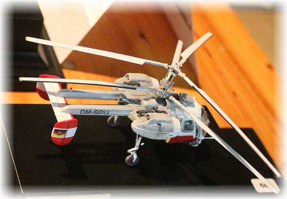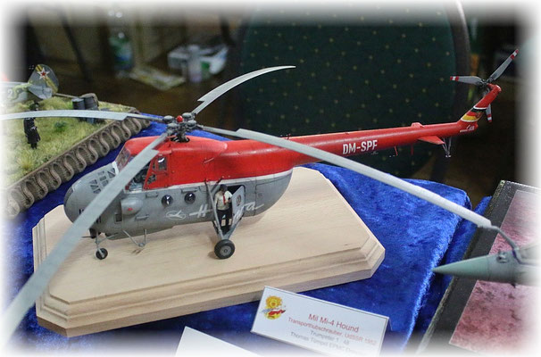 Auch der Lilienthalschlagflügelapparat mit Kohlensäuremotor als Eigenbau in 1/72, eine Triebwerkswartung bei der Su-22 in 1/48 oder der seit Jahren nur teilrestaurierte Mil Mi-4 aus Cottbus meisterlich in Szene gesetzt wussten zu gefallen.