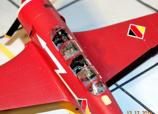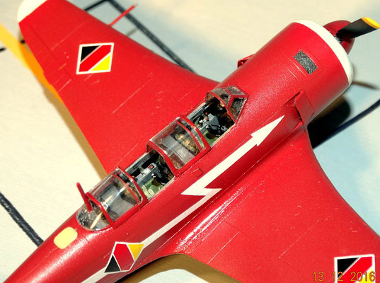 Ergänzt habe ich die elektronischen und/oder Funkgeräte auf der hinteren Ablage sowie die Antennenabdeckung hinter dem Cockpit, außerdem habe ich die Haube gegen eine tiefgezogene von Rob-Taurus getauscht.