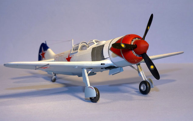Die La-7 war das letzte in Holz/Metall-Gemischtbauweise hergestellte Kampfflugzeug Lawotschkins und das leistungsfähigste von der UdSSR im Zweiten Weltkrieg eingesetzte dieser Art. Insgesamt wurden über 5700 La-7 in den Flugzeugwerken Moskau und Jaroslawl hergestellt.