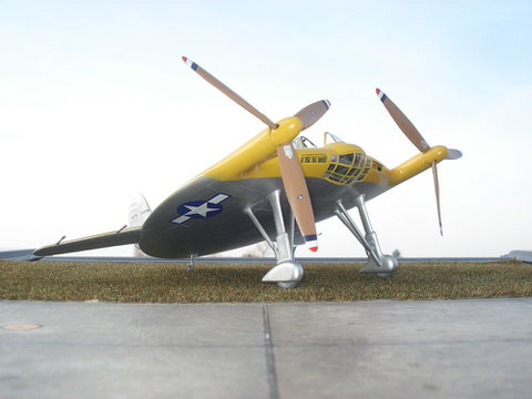 Das Experimentalflugzeug V-173, wegen des eigenwilligen Aussehens als Flying Pancake bezeichnet war mit Continental A-80 Motoren von lediglich 80 PS ausgerüstet, startete bei Windstille mit 60 m Startstrecke, bei 25 kn Gegenwind mit 0 m. Die Maschine erreichte trotz festen Fahrwerkes, welches ihr einen Standwinkel von 22 Grad verlieh, 220 km/h. Die über 5m Durchmesser verfügenden Dreiblattpropeller waren aus Holz gefertig. Für die mit 2 x 1800 PS, stärker motorisierte Serienmaschine waren Luftschraubenblätter mit Schlaggelenken vorgesehen. Damit sollte sowohl ein Schwebeflug als auch eine V max von ca. 800 km/h erreicht werden. Die Maschine XF5U-1 wurde zwar noch gebaut aber nicht mehr erprobt. Die Zeit von KolbenmotorJägern neigte sich Ende der 40er auch bei der Navy dem Ende zu.