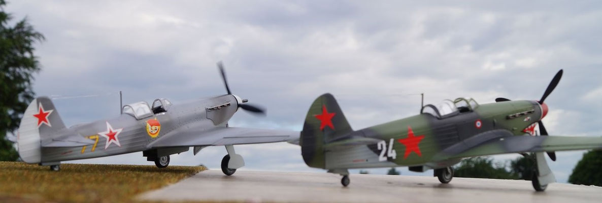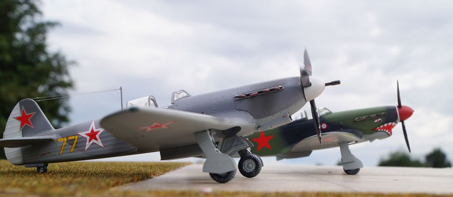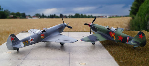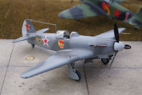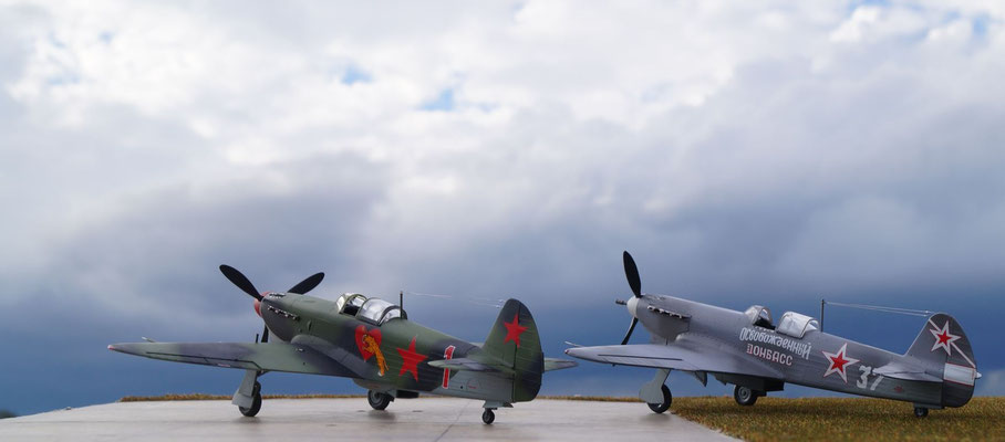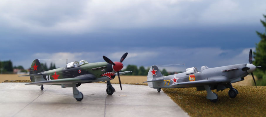 Die Jak-1b stellt die letzte Variante der Jak-1 dar, und wurde bis 1944 produziert, die Jak-9 T eine mit 37mm Motorkanone bewaffnete Variante der Jak-9. Die Jak-9 war mit über 16000 Einheiten in allen Versionen, das meistgebaute Jagdflugzeug der Roten Armee.