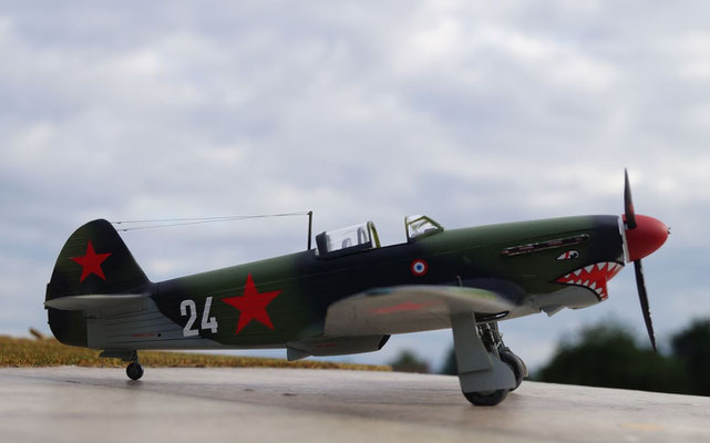 Das Modell der Jak-9T ist schon in den 90er Jahren in fast allen Varianten von ICM erschienen. Die Formel ist gut getroffen, wer will kann die Motorenverkleidung öffnen, Motor und Innenleben ist vorhanden.