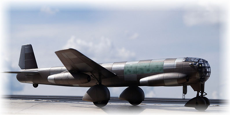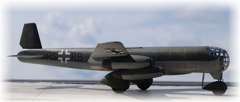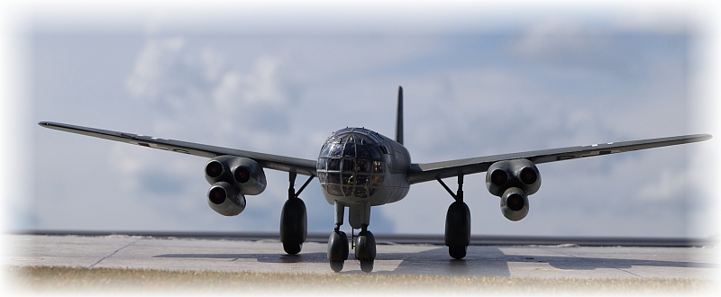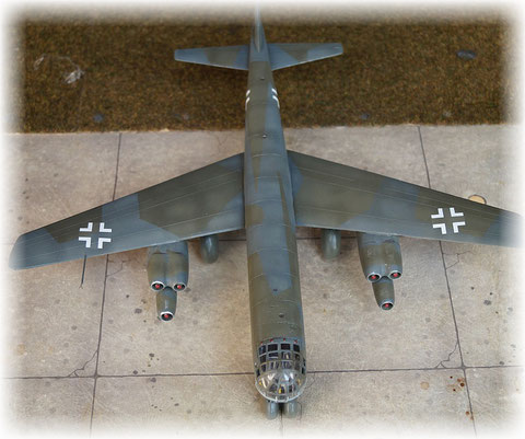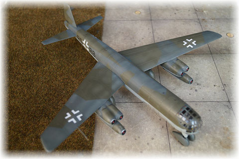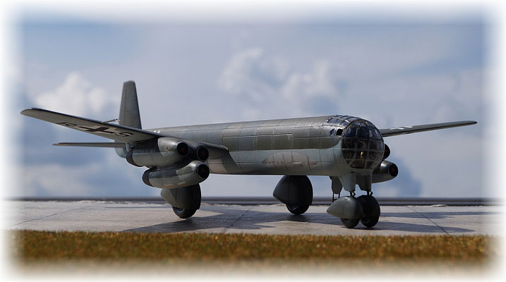 Das Modell der Ju 287 erschien bei Huma vor ca. 30 Jahren. Es ist mit feinsten filigranen Plastikteilen für das Cockpit ausgestattet. Die Passung ist gut. Huma hat als Modell ausschließlich die Ju 287 V1 dargestellt. Sie kann aber in verschiedenen Ausrüstungs- und Bemalungszuständen gebaut werden. Ich habe mich an Fotos der Endmontage in Brandis orientiert, die Maschine hat noch keinen Tarnanstrich.