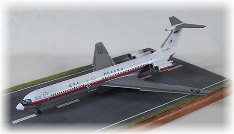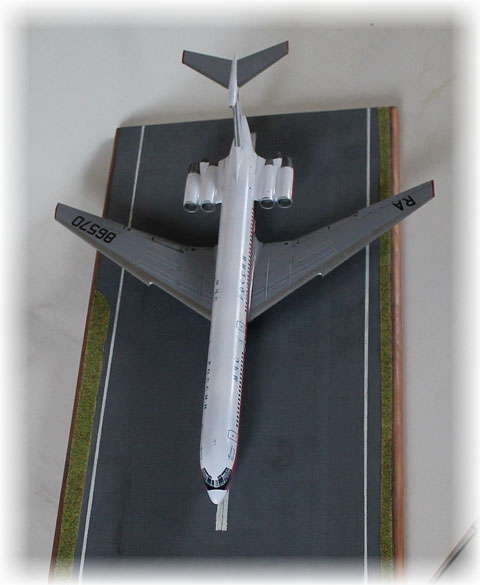 Der Bausatz von Zvesda ist in diesem Maßstab wohl einer der Besten der im Airlinersektor zu finden ist. Alles passt ohne Probleme, man kann die Maschine in unterschiedlichen Zuständen bauen. Ich entschied mich die Klappen ausgefahren zu gestalten.