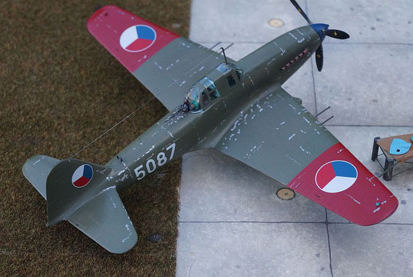 Das Modell von Special Hobby stellt einen typischen Mediamix aus Plastik, Resin, Photoätzteilen dar und ist gut zu bauen. Ich wählte eine farbenfrohe Manöverbemalung der CZ LSK in den letzten Jahren ihrer Dienstzeit. Auf den Fotos in den Büchern von Jakab, sieht man den Maschinen ihren abgeflogenen Zustand an, die großen Fahrwerksklappen waren bei den Avia B.33 oft abgebaut. Die Raketenbehälter unter den TF sind Eigenbau. Danke an Jan, für die Literaturhilfe.